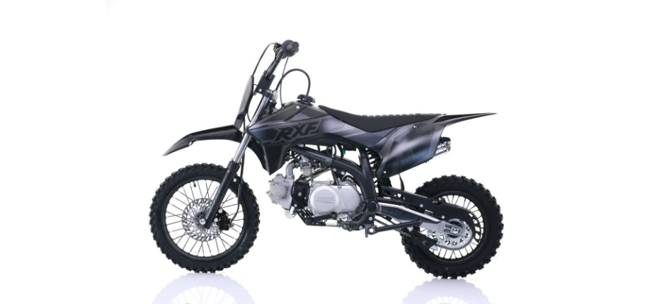 Explore new adventures with the RXF MX 110, the perfect dirt bike for young riders aged 10 and up. Equipped with a 110CC gas engine delivering 6.8 HP, it reaches a top speed of 45 km/h. Its 630 mm front suspension and 270 mm rear suspension ensure a comfortable and stable ride. With a seat height of 690 mm and a weight of 74 kg, it is the ideal choice for young riders seeking thrilling experiences.