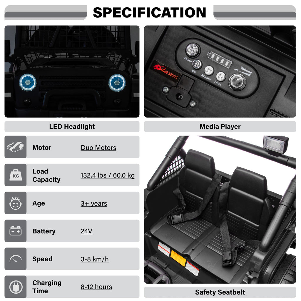 2026 NEW JEEP OUTREACH 2 Seater 24V Jeep Style Kids Ride On Car with Parental Remote Control